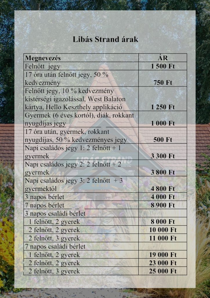 Libás strand díjfizetési ideje: 8:30-19 óráig pénztárzárás 18 óra